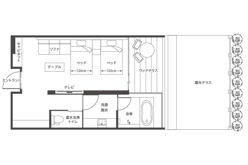 房间内的浴室、厕所和洗脸盆是分开的,浴室的窗户可以打开。享受半露天浴池。