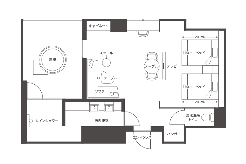一個露天浴池坐落在露台上,基於讓浴室和室外露台存在於同一空間的想法。